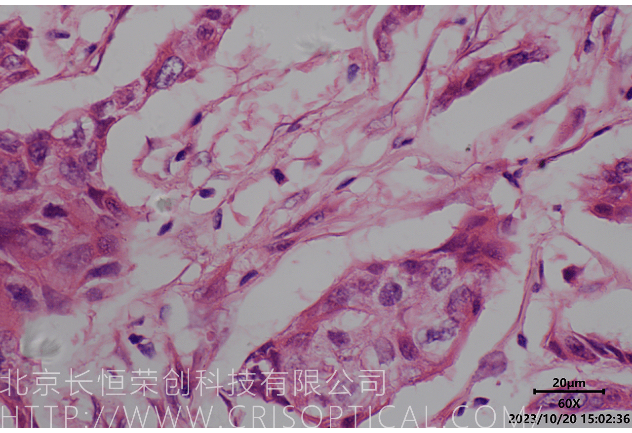 腫瘤診斷:對癌癥和其他腫瘤的病理切片觀察是確定腫瘤類型、分級和分期的關鍵步驟。醫(yī)生通過觀察組織樣本中的細胞形態(tài)、核形狀、分裂活性和其他特征,可以識別腫瘤的類型,幫助決定治療方法。
