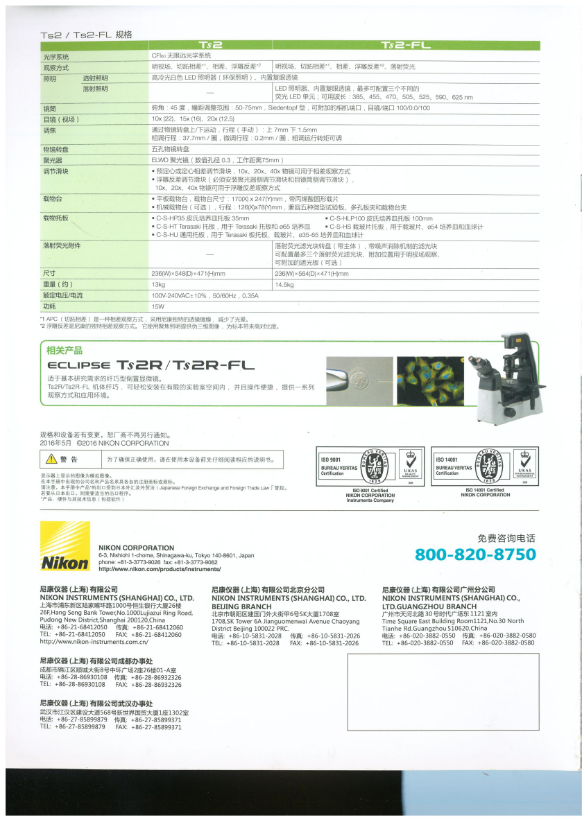 • 產(chǎn)品名稱: 尼康 Nikon Ts2 倒置顯微鏡