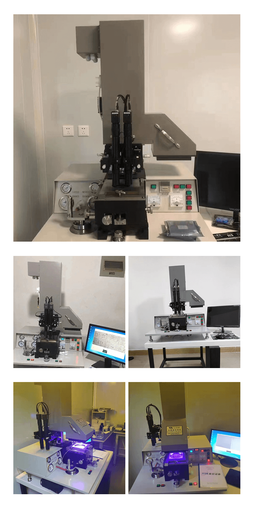 l?C-25X300型4英寸設(shè)有相對(duì)應(yīng)的真空吸附基片的“承片臺(tái)”三個(gè),分別適用于φ2、φ3、φ4。對(duì)于非標(biāo)準(zhǔn)片或碎片,只要堵塞相應(yīng)的小孔,同樣能真空吸附。