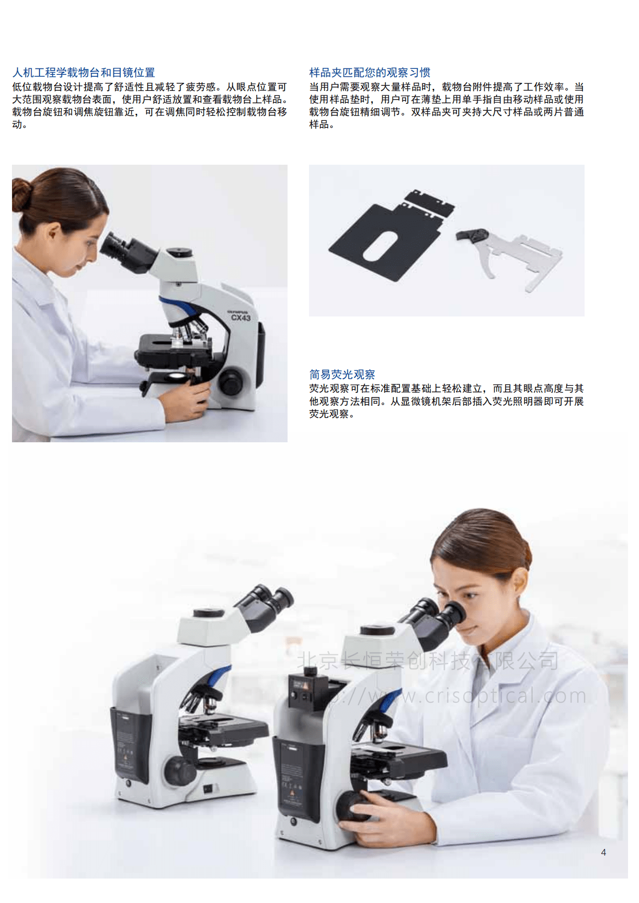 人性化設(shè)計(jì): CX33顯微鏡設(shè)計(jì)人性化,包括舒適的眼鏡、可調(diào)節(jié)的觀察角度和機(jī)械臺(tái)的平滑移動(dòng),提高用戶的使用體驗(yàn)。